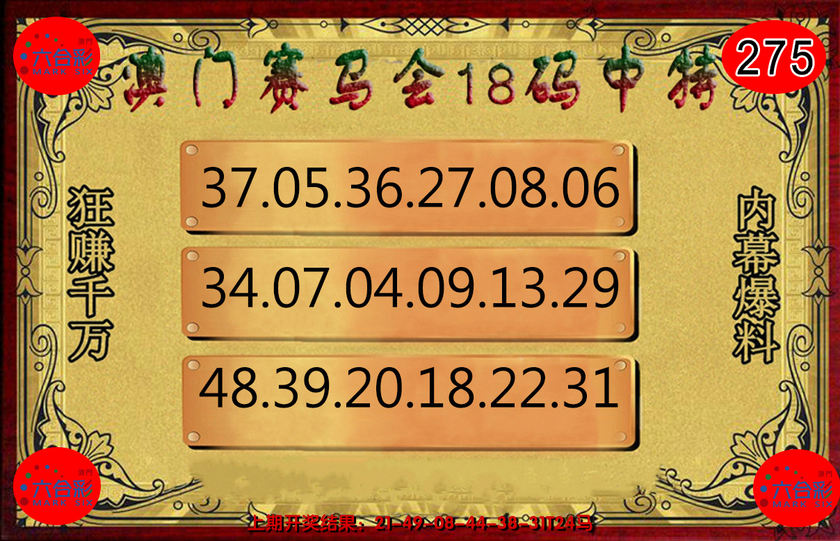 275期:$【十六码中特】开猪31准 17.39.16.42.48.20.31.21 02.10.46.40.04.33.43.18 |